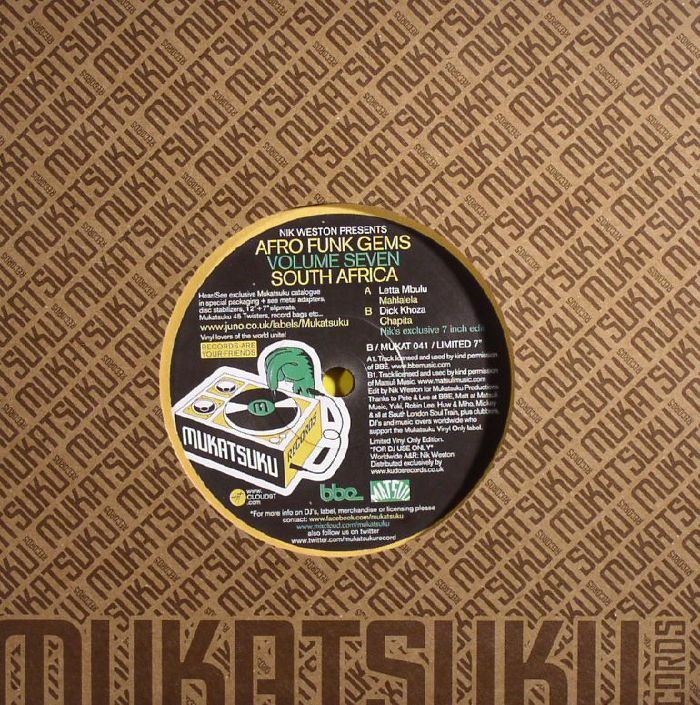 The latest installment of the Afro Funk Gems series from Nik Weston's prolific and consistently excellent label, Mukatsuku. First up is a trip back to 1970, just three years after Letta Mbulu escaped apartheid and moved the US (and fifteen years before she collaborated with Michael Jackson on 'Librarian Girl') the horn-laded, feel-good 'Mahlalela' came from her third album and was licenced by Tamla Motown in South Africa too for a rare as hen's teeth 45. Have you see one? I certainly haven't and didn't even know about it anyway! This is a one of the facts which makes this series so good, it's educational as well as featuring damn good sounds.
