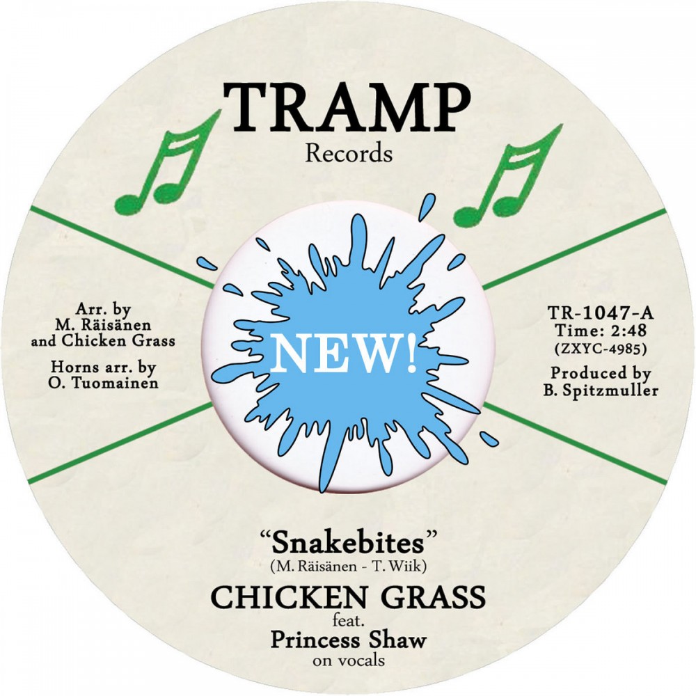 Right then, who here reading this fancies a ton of trunk funk delivered to your door courtesy of our friends in Germany who operate the forever dependable Tramp Records? Armed to the grill with the feel good factor funk vibes is this delightful debut forty-five from Chicken Grass who alongside guest vocalist royalty in the shape of Princess Shaw know just how to bum rush the show and leave the party people yearning for more. This Finnish funk phenomenon go full throttle on 'Snakebites', a track that packs more sting in the tail than an obese scorpion that's just been trod on. Over on the flip, 'Trading Bullets' , the chaps take the foot off the gas just a smidge for what turns out to be a charming mid tempo joint with all the funk intact. Fortfied Finnish feel good flavour from the off, we urge you to waist no time in purchasing this forty-five by visiting the Bandcamp page after the stream.