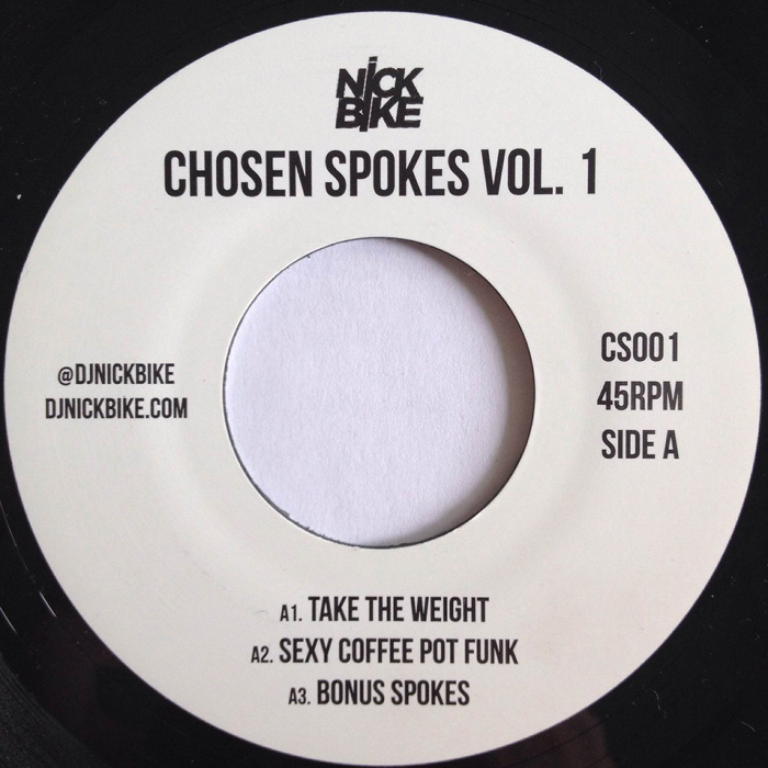 Tasty little DJ tool from Nick Bike (do they have a serious cycle theft problem in Vancouver then?) featuring a super tight beat laden version of 'Who's Gonna Take The Weight', a minute of 'Sexy Coffee Pot' and some bonus Spokes. The B side features a cut called 'The Beat', a southern blues/funk edit yet I must confess I don't know the track! 'Take The Weight' is the one though, I can see that slipping into DJ sets very easily indeed. 300 copies only and already sold out on Bandcamp, but there are copies over at Juno, see link below. And look out for Volume 2 coming along at some point soon.