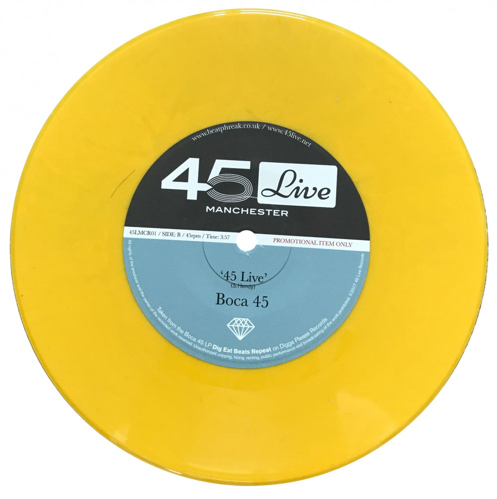 With 45 Live's brand new night at Band On The Wall in Manchester kicking off in October, the 45 Live Manchester crew have pressed up a super ltd 'Golden Ticket'. This exclusive record is ONLY available at the night, with just 50 copies available on each of the first 4 nights. 2 dance-floor bangers from DJ Format and Boca 45 to set the scene, and what will be a much prized and collectable 45 (not that anyone who gets one would ever sell it!).